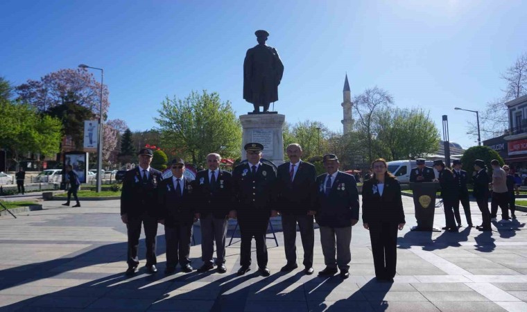 Türk Polis Teşkilatının 179. kuruluş yıl dönümü dolayısıyla Atatürk Anıtı önünde tören düzenlendi. Edirne Emniyet Müdürü Onur Karaburun ve Türkiye Polis Emeklileri Sosyal Yardım Derneği Edirne Şube Başkanı Ali Bilgin anıta çelenk sundu.