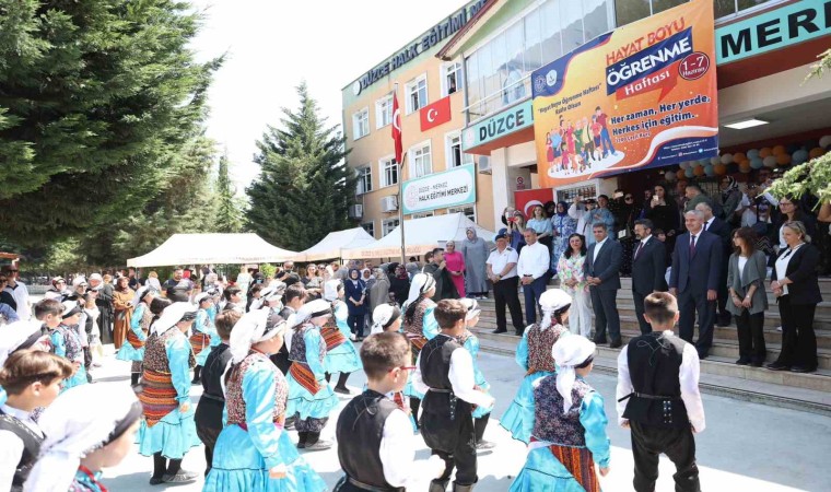 Düzce’de kursiyerlerin ilgi gösterdiği Halk Eğitim Merkezi, yıl sonu sergisini açtı. 1-7 Haziran Hayat Boyu Öğrenme haftası etkinlikleri çerçevesinde merkezde kurulan sergiyi Düzce Valisi Selçuk Aslan ve eşi Pınar Ölmez Aslan açtı. bin 64 kursta eğitim alan yaşları 5 ila 70 arasında ki 19 bin 617 kursiyerin hazırladığı emekleri inceleyen Vali Aslan, " “Her zaman, her yerde, herkes için eğitim” anlayışıyla faaliyetlerini gösteren merkez bünyesindeki bin 64 kursta eğitim alan, yaşları 5 ila 70 arasındaki 19 bin 617 kursiyerin emeklerinden ötürü teşekkür ediyorum" ifadelerini kullandı.