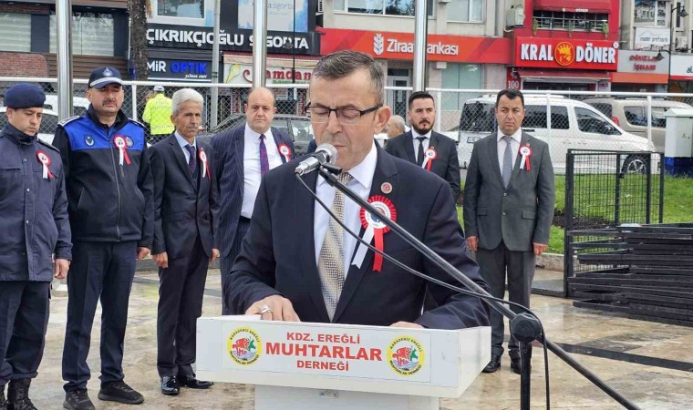 Tören, Kdz. Ereğli Muhtarlar Derneği Başkanı Adnan Alar’ın Atatürk Anıtı’na çelenk sunmasıyla başladı. Ardından, katılımcılar saygı duruşunda bulundu ve İstiklal Marşı okundu. Başkan Alar, konuşmasında muhtarlığın Türkiye’deki yerel yönetim ve demokrasi açısından kritik bir rol üstlendiğini vurgulayarak, “Vatandaşlarımızın devletimize ihtiyaç duyduğunda çalacakları ilk kapının muhtarlarımız olduğunun bilincindeyiz,” dedi. Alar, muhtarların sadece köy ve mahalle sakinlerinin değil, aynı zamanda devletle olan ilişkilerinin de önemli birer aracı olduklarını belirterek şunları dile getirdi ‘ Üyesi olduğumuz Türkiye muhtarlar konfederasyonumuzun 3 Mart 2015 tarihinde içişleri bakanlığı mahalli idareler genel Müdürlüğüne yapmış olduğu müracaatı neticesinde Osmanlı arşivinde 2. Mahmut döneminde yayınlanan ferman ile 19 Ekim 1829 tarihinde kurulan muhtarlık teşkilatının kuruluş günü esas alınarak 19 Ekim günü muhtarlar günü olarak kutlanmasına karar verilmiştir. Bugünü bizlere "muhtarlar günü" olarak hediye eden başta cumhurbaşkanımız Recep Tayyip Erdoğan’a hükümetimize ve gazi meclisimize çok teşekkür ederiz. Muhtarlar bir yandan köy ve mahalle sakinlerinin devlet kurumlarıyla ilişkilerinde aracı bir rol oynarken, diğer yandan da çağdaş kamu yönetimi anlayışının en temel gereksinimlerinden biri olan katılımcılığın sağlanmasında önemli bir görevi yerine getirmekte, daha anlaşılır bir ifade ile devlet vatandaş arasında bir köprü vazifesi görmektedir. ” diye konuştu.