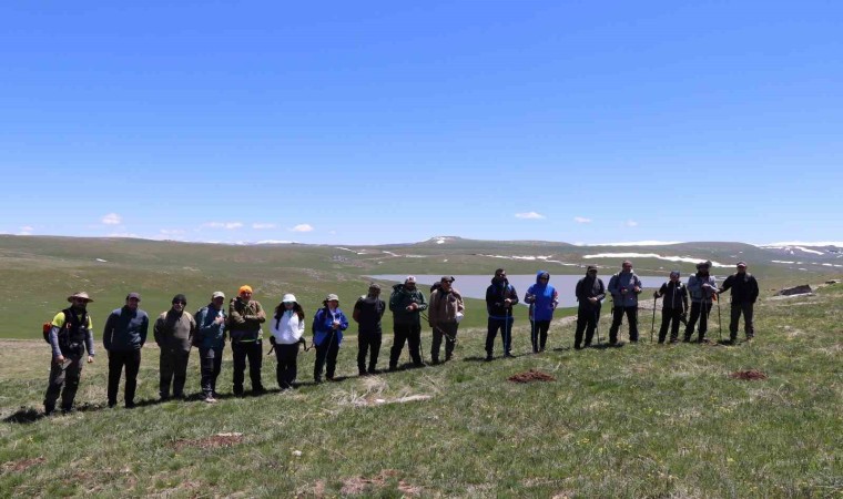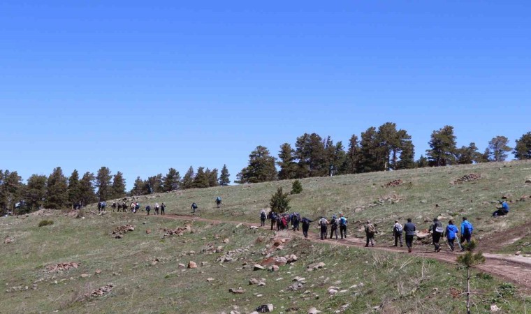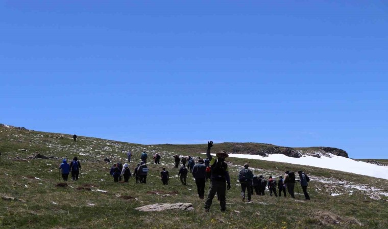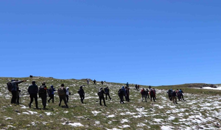 Erzurum’da bir grup doğa sever 19 Mayıs coşkusunu çam ağaçları arasında ve karlı dağlarda yürüyerek yaşadı.
