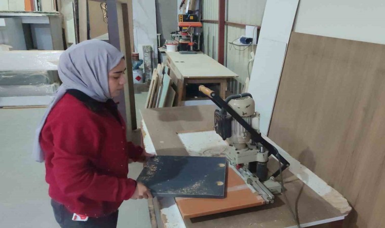 Kahramanmaraş’ta yaşayan 19 yaşındaki Hatice Kübra Topaktaş, babasının yanına yardım için gittiği atölyede 5 yıldır dolap, masa ve birçok ahşap ürün üretiyor.