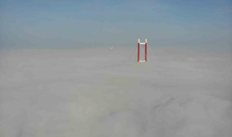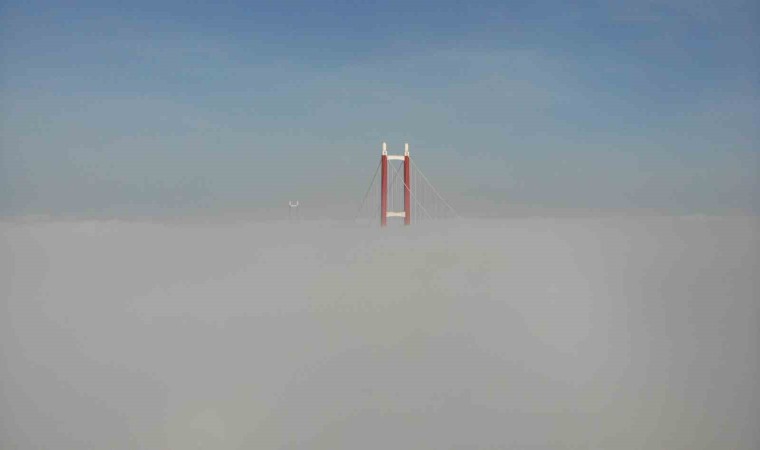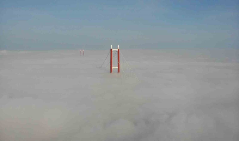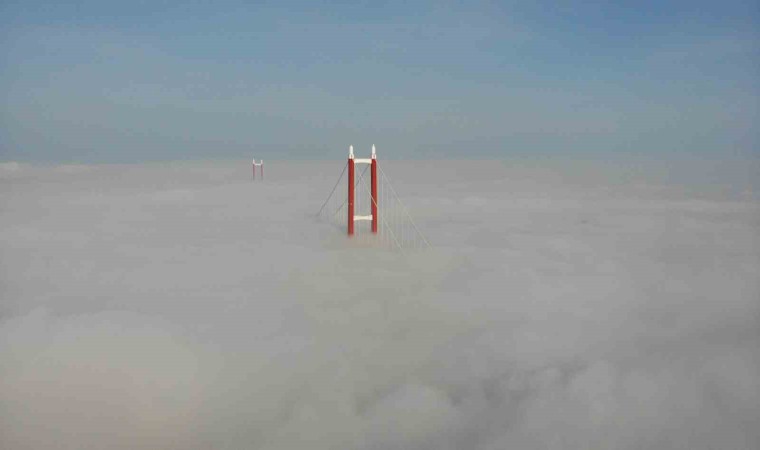 Çanakkale’de dün akşam saatlerinde başlayan ve gece etkisini arttıran sis etkisini sürdürmeye devam ediyor. 2023 metre orta açıklığıyla dünyanın en uzun orta açıklığa sahip asma köprüsü olan 1915 Çanakkale Köprüsü de sis içinde gözden kayboldu. 1915 Çanakkale Köprüsü’nün yalnızca kuleleri görülebilirken, köprü dron ile görüntülendi. Sis bulutu içinde kaybolan 1915 Çanakkale Köprüsü hayran bıraktı.