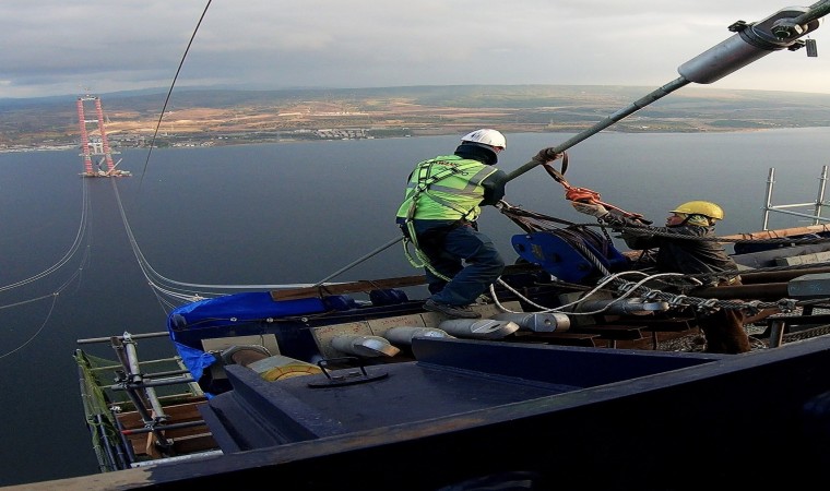 Türkiye’nin vizyon projelerinden olan dünyanın en uzun orta açıklıklı 1915 Çanakkale Köprüsü ve Malkara-Çanakkale Otoyolu Projesi’nin farklı safhalarında 17 bini köprü tarafında, 13 bini otoyol tarafında olmak üzere 15 farklı milletten toplam 30 bini aşkın kişi çalıştı.