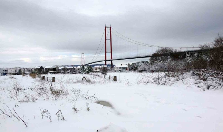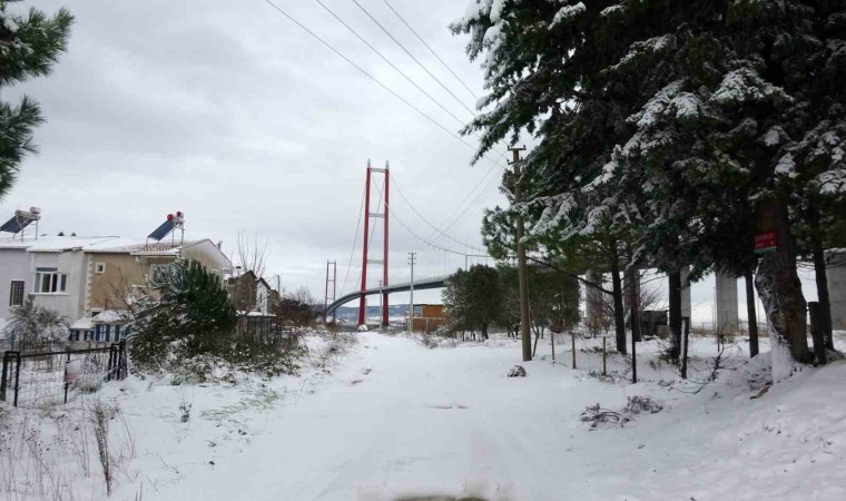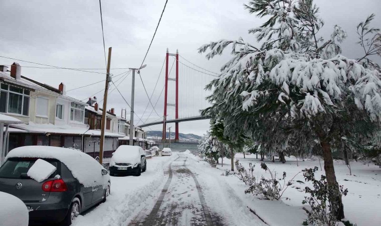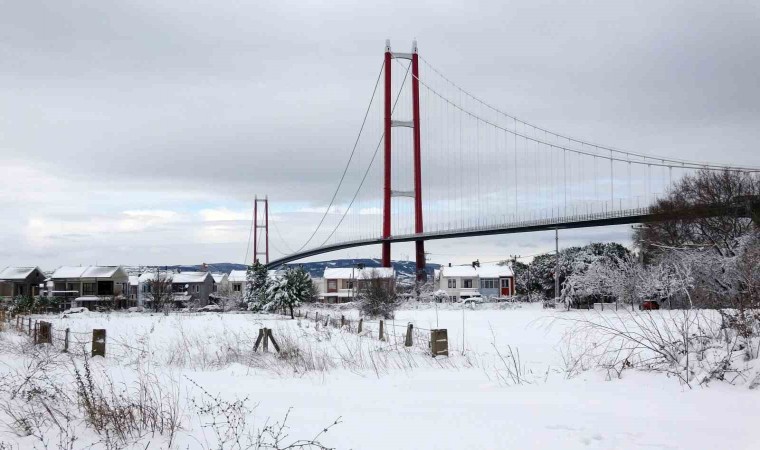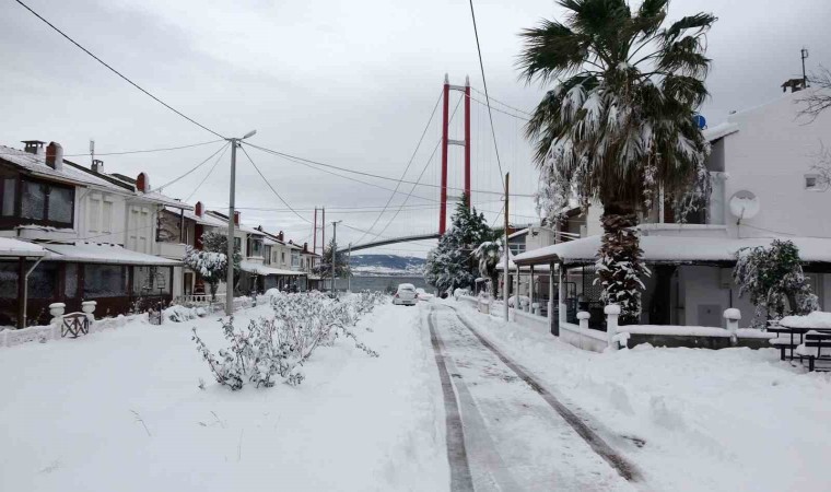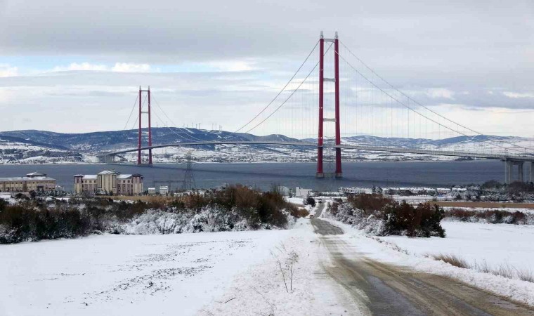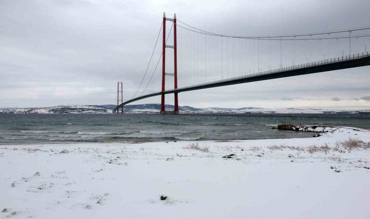 Kar yağışının ardından 1915 Çanakkale Köprüsü ve sahildeki beyaz örtü aynı kareye yansıyınca, ortaya eşsiz manzara çıktı. 1915 Çanakkale Köprüsü kar manzarasıyla büyülerken, ortaya kartpostallık görüntüler çıktı.