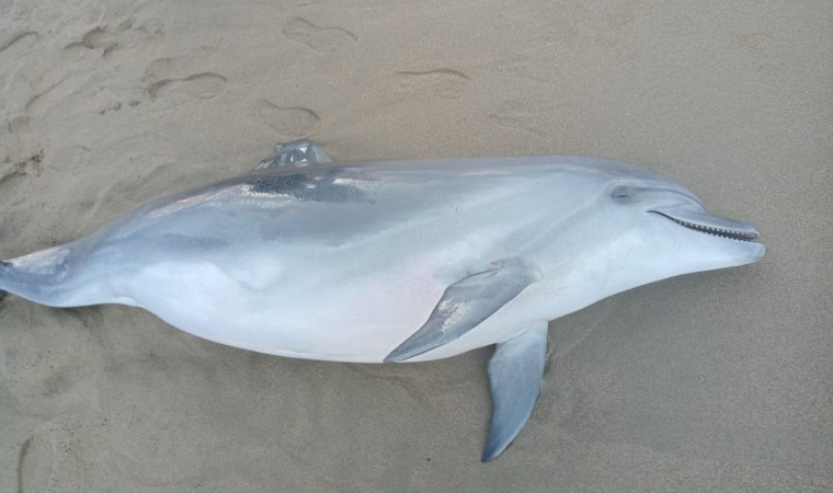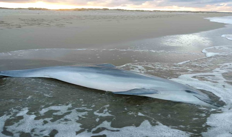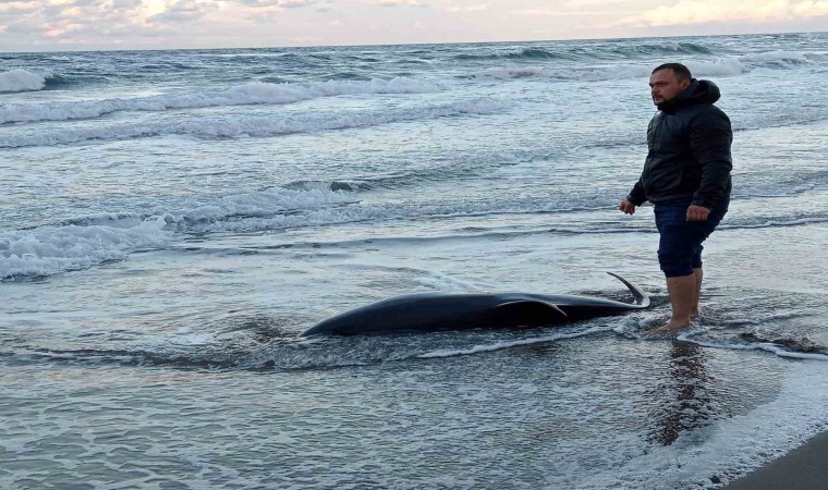 Sakarya’nın Kaynarca ilçesinde yaklaşık 2 metre boyunda ölü yunus balığı sahile vurdu.