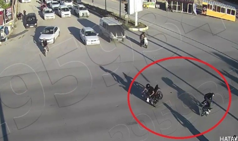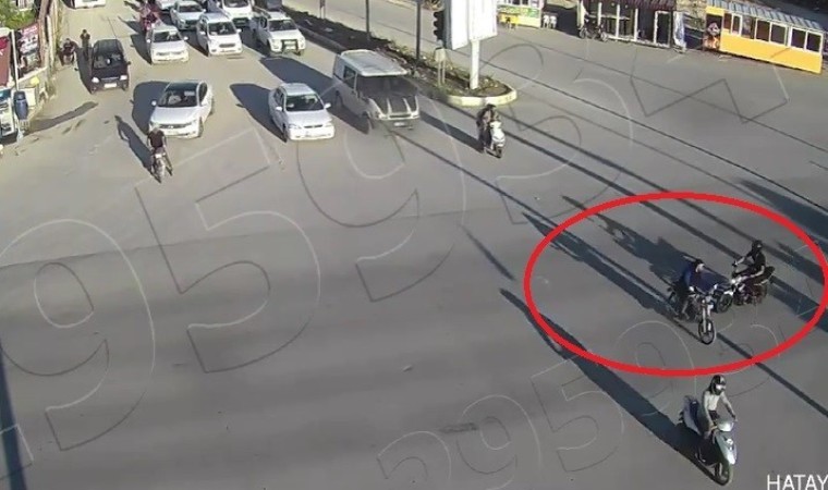 Hatay’ın Antakya ilçesinde 2 motosikletin kavşakta çarpıştığı ve sürücülerin yola savruldukları anlar kameraya yansıdı.