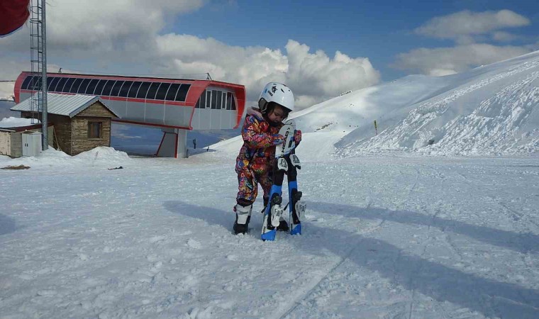 Ailesi ile birlikte Ergan Dağı Kayak Merkezi’ne gelen 2 yaşındaki Elif Şare Karslı ise kayak pistinde görenleri ise kendine hayran bıraktı. Henüz konuşamayan minik Elif, milli kayakçı Aygen Yurt’tan ilk kayak eğitimini aldı.