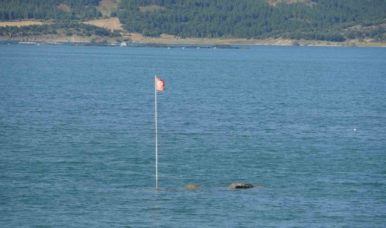 Almus’ta bu yıl yağışların çok olmasıyla birlikte su seviyesi yükseldi. Gölde geçtiğimiz yıllarda tarımsal sulama ve elektrik üretimi nedeniyle sular çekilmişti. Suların çekilmesi ile kıyı 150 metre uzamış ve su altındaki kayalıklar ortaya çıkmıştı. Şimdi ise geçtiğimiz yıl insanların yürüyerek gidebildikleri Malkayası olarak bilenen kayalık alan yeniden sular atında kaldı. Sular altında kalan kayalıktan geriye ise en üst kısmında dikili olan Türk bayrağı kaldı. İlk bakışta gölün ortasına yakın bölümde sadece Türk bayrağının dalgalandığı direği görenler şaşkınlığını gizleyemiyor. Baraj kenarından manzarayı izleyenler, bu manzarayı görüntülemeyi ihmal etmiyor.