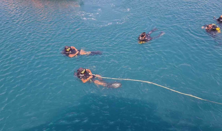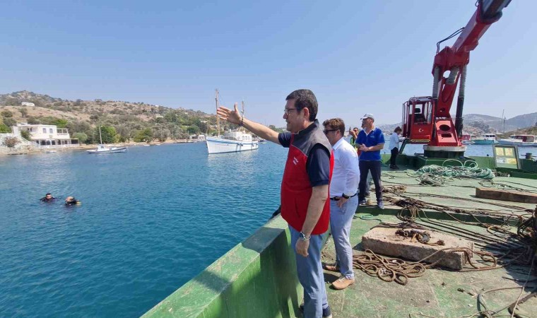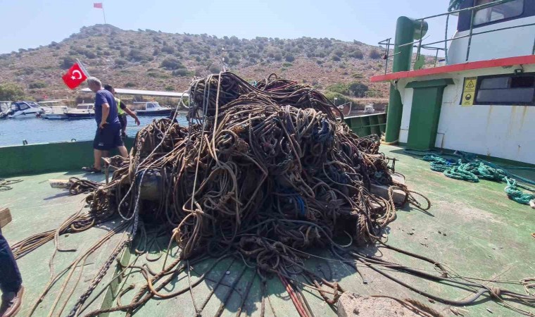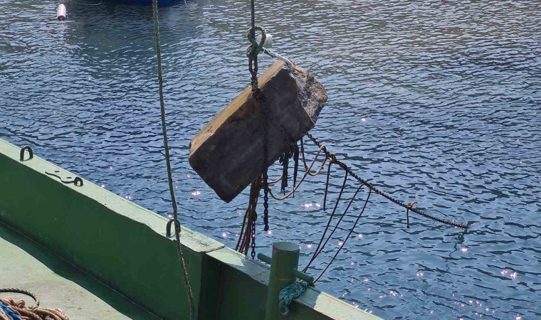 Muğla’nın Bodrum ilçesinde yasadışı yollarla denizin dibine yerleştirilen 20 ton tonoz, çapa ve halat, denizden uzaklaştırıldı.