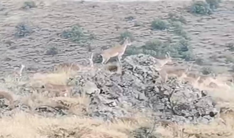 Yüksek rakımlı dağlarda genellikle sürüler halinde görülen yaban keçileri, hava sıcaklığının arttığı bugünlerde su için yerleşim yerlerinin yakınlarına kadar iniyor.
