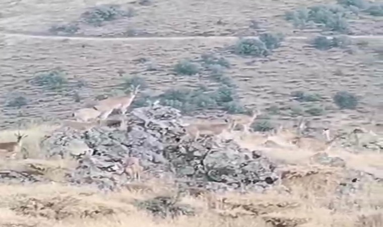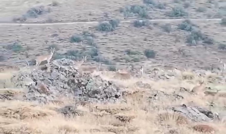 Malatya’da nesli tehlike altında olan yaban keçileri, sürü halinde yol kenarında görüntülendi.