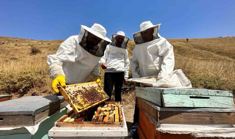 Elazığ’ın Sivrice ilçesinde 2300 rakımlı Hazar Baba Dağı’nın eteğine 6 ay önce kovanlarını bırakan üreticiler, bir yıl önce coğrafi işaretli ürün olarak tescillenen ’geven balı’nda hasada başladı.