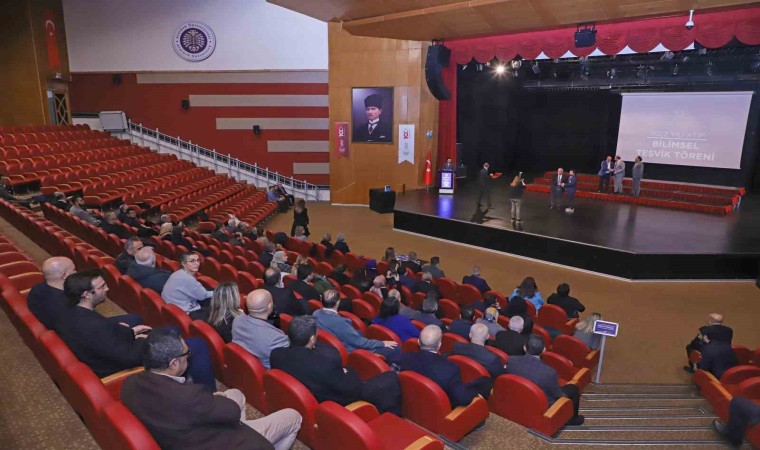 15 Temmuz Milli İrade Salonunda gerçekleşen törende, öğretim üyelerine ödüllerini takdim eden Prof. Dr. Çomaklı, bilime verdikleri katkı ve başarılarından dolayı akademisyenleri tebrik etti.