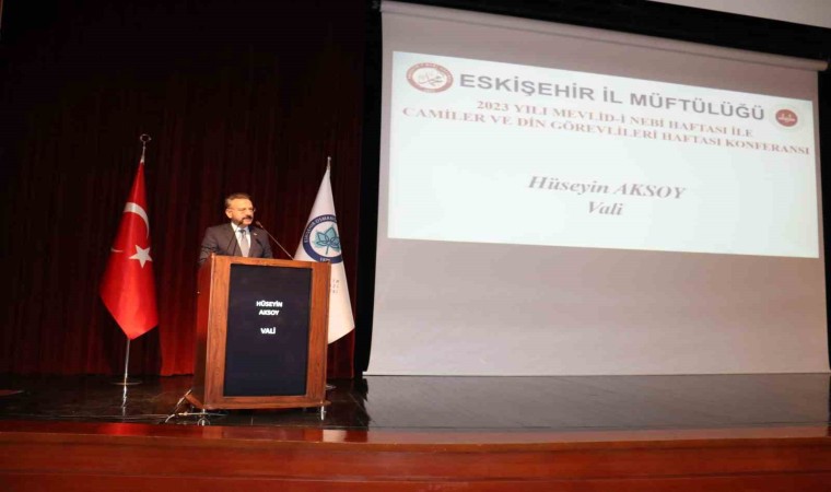 Eskişehir valisi Hüseyin Aksoy, "Eskişehir, birçok alanda olduğu gibi din görevlileri alanında da ülkemizde bir ilke imza atmış şehirdir. Türkiye’de ilk defa din görevlileri topladıkları paralarla bir okul yaptırmışlar ve Milli Eğitim Bakanlığına hediye etmişlerdir. Tepebaşı ilçemizde Mevlidi Nebi Anaokulu adıyla hizmet veren bu okulun yapımında emeği geçen din görevlilerimizi şükranla yad ediyorum. Yüce gönüllü din görevlilerimizin haftasını tebrik ediyorum. Türk milletinin hazreti peygamber sevgisi başkacadır. Onun için erkek evlatlarımızın çoğunun adı Mehmet’tir. Ordumuzun adı Mehmetçik’tir. Bizim ordumuzda takımlarımız 63 kişiden müteşekkildir. Çünkü 63, hazreti peygamberimizin ömrü saadetleridir. Türk milleti, bin küsur senedir İslamiyet’in alemde yayılması için mücadele eden bir millettir. Allah bu dine hizmet eden yerin altında kefensiz yatanlar hürmetine bize merhamet etsin. Bizi, dünyada peygamberimizin sünnetinden, ahirette de şefaatinden, mahrum bırakmasın" dedi.