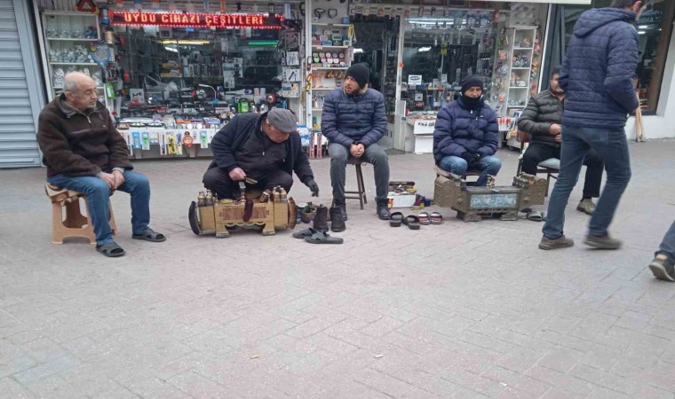 2024 yılının ilk gününün yaşandığı Eskişehir’de ayakkabı boyacısı esnafı ekmek parası için tezgâh açtılar.