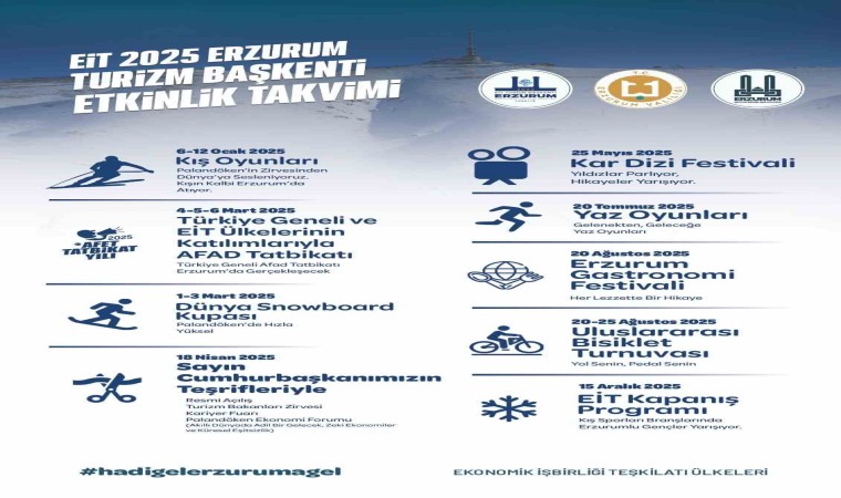 Doğu Anadolu’nun kültür ve medeniyet başkenti olan Erzurum’da gerçekleşecek olan bu organizasyona binlerce yerli ve yabancı turistin katılması beklenirken, yoğun çalışmalar sonucu ulusal, uluslararası ve yerel düzeyde hazırlanan programların etkinlik takvimi de netlik kazanmış oldu.