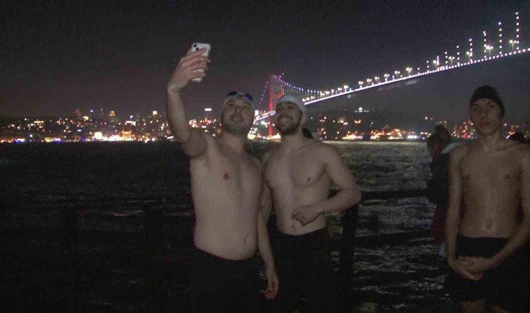 Üsküdar Kuzguncuk sahilinde bir araya gelen yüzücüler, Boğaz’ın soğuk sularına atlayarak 2025’i kutladı.