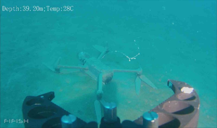 Denize düşen 230 bin TL değerindeki termal kameralı dron, su altı dronu ile saatler süren arama sonucu 40 metre derinlikten çıkartıldı. Su altından çıkarılan dron kullanılamaz hale gelirken içerisinde çekilen görüntüler kurtarıldı.