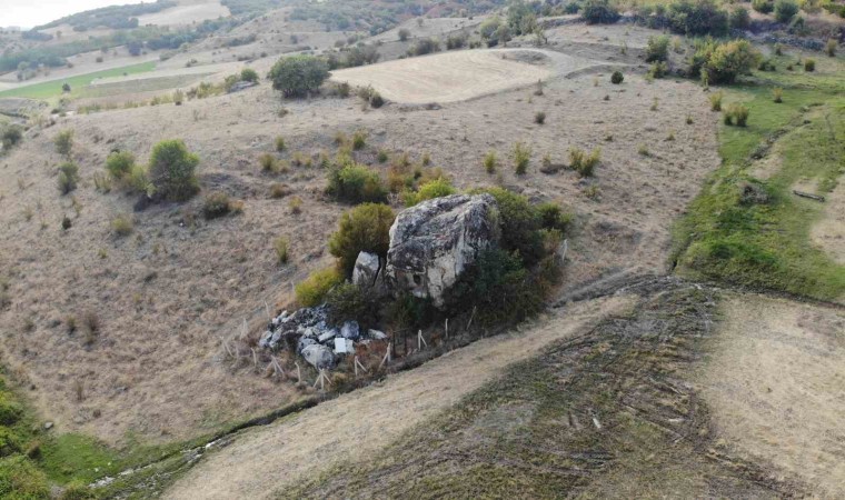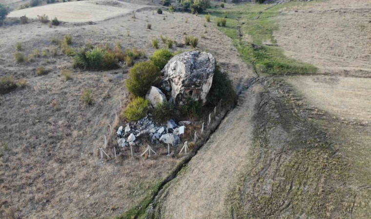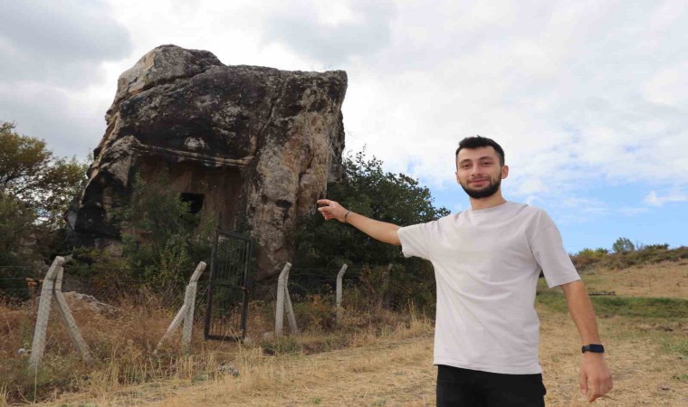 Tokat’ta Komana Antik Kenti’ndeki kaya mezar, bölgeden geçen yolcuların dikkatini çekiyor.