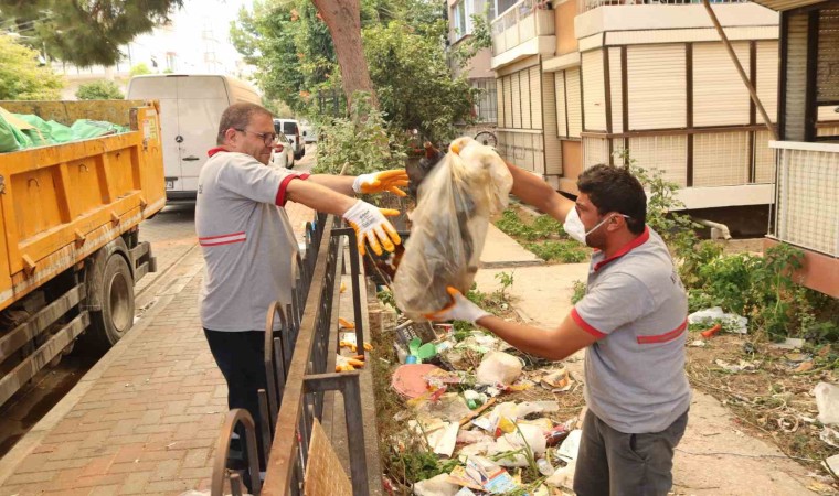 Adeta adım atacak yerin olmadığı çöp ev için mahalle muhtarı da devreye girerek Aynur D.’yi çöplerin atılması konusunda ikna etti. Bunun üzerine yine muhtar tarafından ev dezenfekte ettirildi. Ardından adrese gelen Karşıyaka Belediyesi ekipleri giydikleri özel kıyafet ve taktıkları maskelerle birlikte evin içerisinde hummalı bir çalışma başlattı. Çöpleri evden çıkarma işlemleri 4 gün boyunca sürerken, bu süre zarfında ise 10 kamyon çöp çıktı.