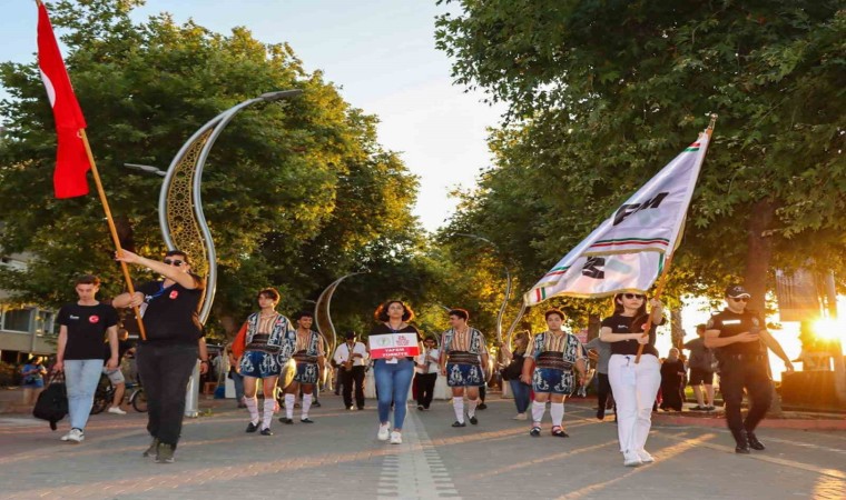 Yüzlerce dansçının katıldığı şölen renkli görüntülerle başladı. Gazipaşa Caddesi’nde başlayan kortej yürüyüşü 15 Temmuz Demokrasi ve Cumhuriyet Meydanı’nda sona erdi. Festivale bu yıl YAFEM ekiplerinin yanı sıra Bosna Hersek, Kabardey, Irak, Kazakistan, Kuzey Osetya, KKTC, Kosova, Dağıstan, Güney Osetya ve İran’dan halk oyunları ekipleri katıldı.