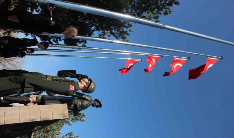 Atatürk Anıtına çelenk sunumunun ardından saygı duruşunda bulunuldu İstiklal Marşı okunmasıyla tören sonra erdi.
