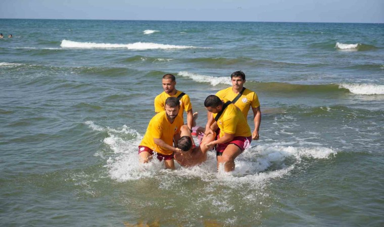 Samsun’da denize giren vatandaşların boğulmasını önlemek amacıyla bu yıl Büyükşehir Belediyesi’ne bağlı 85 cankurtaran görev yaptı. Yaz sezonunu kapatan cankurtaranlar, Atakum İskelesi mevkisinde toplanarak tatbikat yaptı.