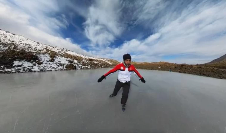 3 bin 549 rakımlı Keşiş Dağı’ndaki gölette buz pateni
