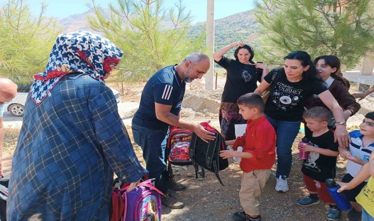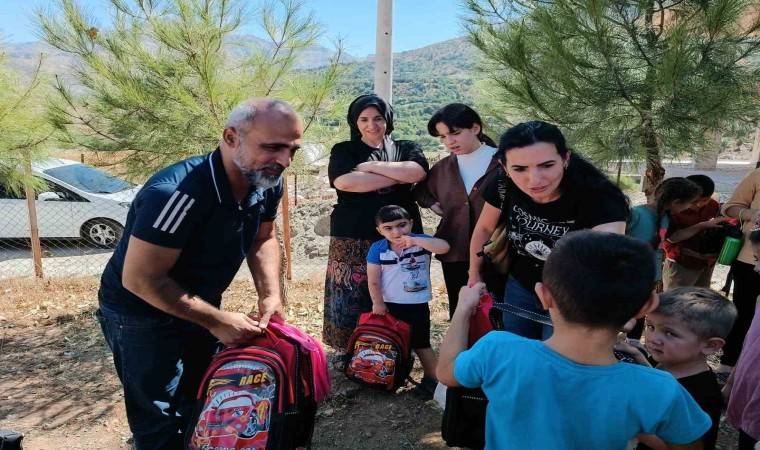 TÜRKAB üyeleri zorlu dağ yollarını aşarak ulaştıkları köylerde okula başlayacak olan öğrencilerin başta çanta olmak üzere tüm okul malzemelerini kendilerine ulaştırarak hediye etti.