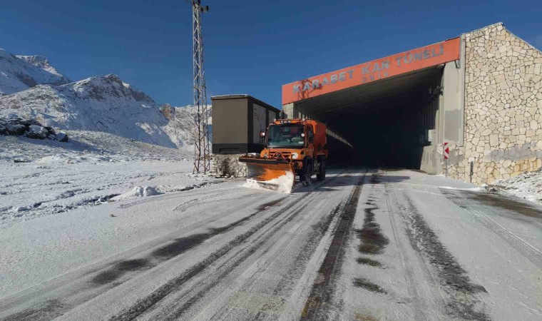 Van-Bahçesaray karayolu üzerindeki 3 bin rakımlı Karabet Geçidi’nde dün akşam etkili olan kar yağışıyla birlikte Karayolları ekipleri bölgede kar temizleme çalışması yaptı.