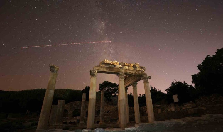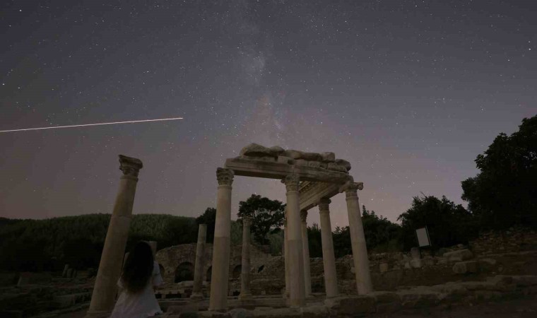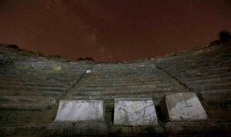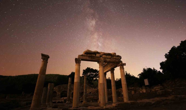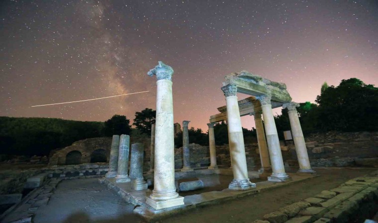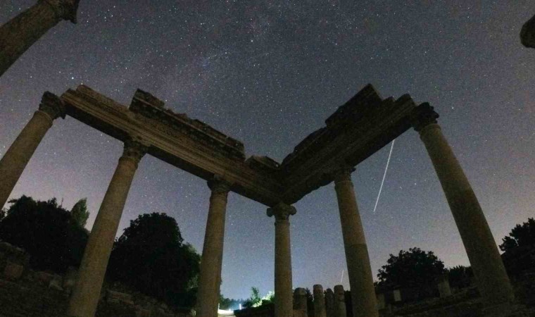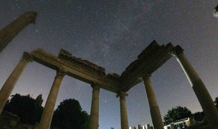 Tüm dünyanın merakla beklediği perseid meteor yağmuru, Milattan önce 3. yüzyılda kurulan Muğla’nın Yatağan ilçesindeki Stratonikeia antik kentinde görüntülendi.