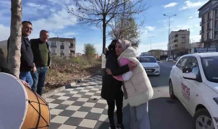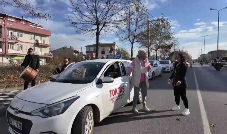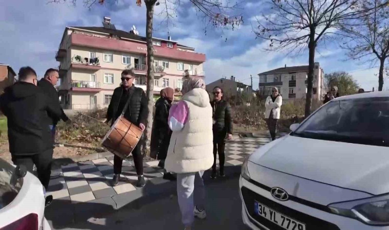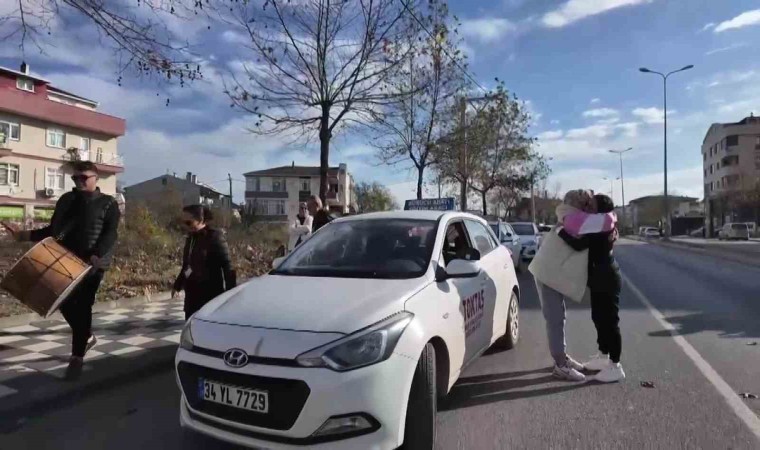 Kocaeli’de 2 kez direksiyon sınavına giren ancak kazanamayan kadın, 3’üncü girişinde sınavı geçince arkadaşları tarafından davul ve zurna ile karşılandı.