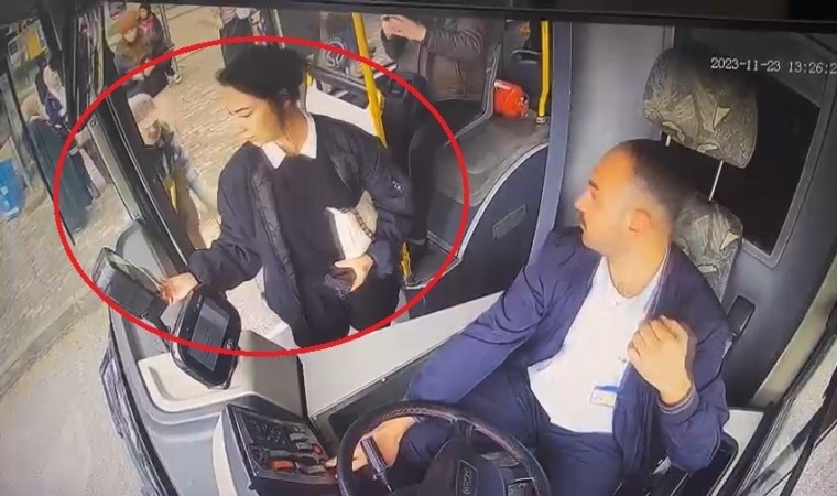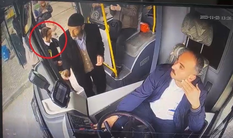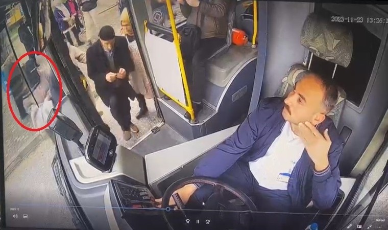 O anlar belediye otobüsünün güvenlik kamerasına an be an yansıdı.