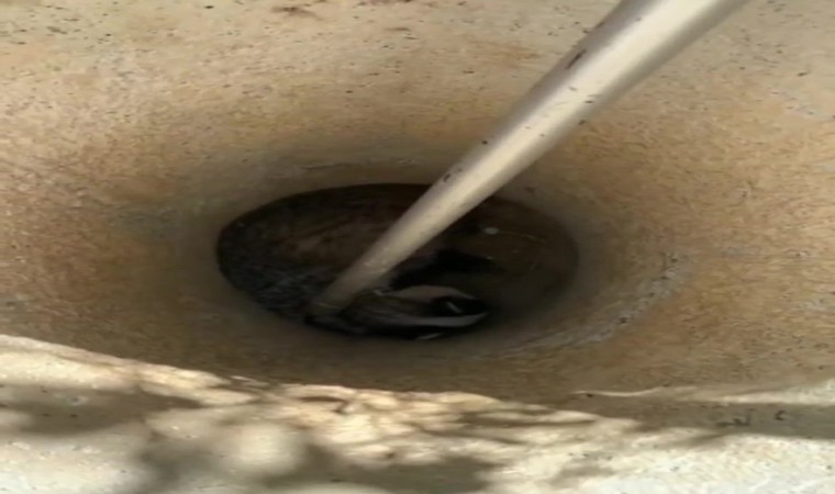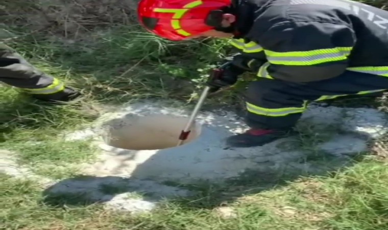 Denizli’de elektrik direği için açılan yaklaşık 3 metre derinliğindeki çukura düşen porsuk, itfaiye ekiplerince kurtarıldı.