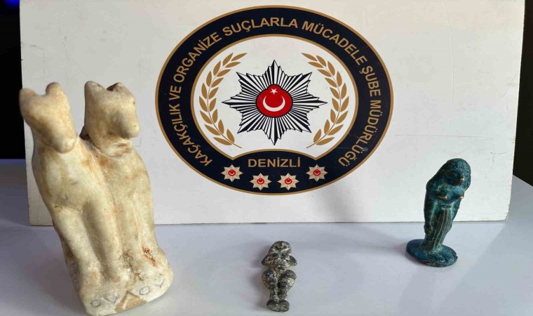 DENİZLİ (İHA) – Denizli’nin Çivril ilçesinde polis ekiplerinin düzenlediği operasyonda 3 adet tarihi eseri satmaya çalışan iki şüpheli yakalandı.
