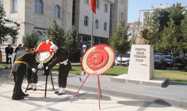 Cizre Garnizon Komutanlığı tarafından Orhan Doğan Caddesi üzerinde bulunan Hükümet Konağı bahçesinde düzenlenen 30 Ağustos Zafer Bayramı kutlamaları, Kaymakam Ahmet Vezir Baycar ile Garnizon Komutanı Piyade Albay Mehmet Arıkök’ün Atatürk büstüne çelenk bırakılmasıyla başladı. Çelenklerin bırakılmasının ardından bir dakikalık saygı duruşunda bulunulup, İstiklal Marşı okundu. Tören, Piyade Üsteğmen Kaan Kütükçü’ün günün anlam ve önemini belirten konuşma yapmasıyla devam etti.