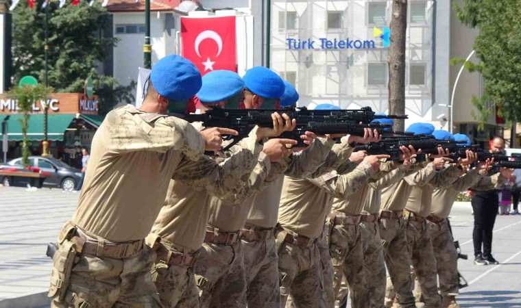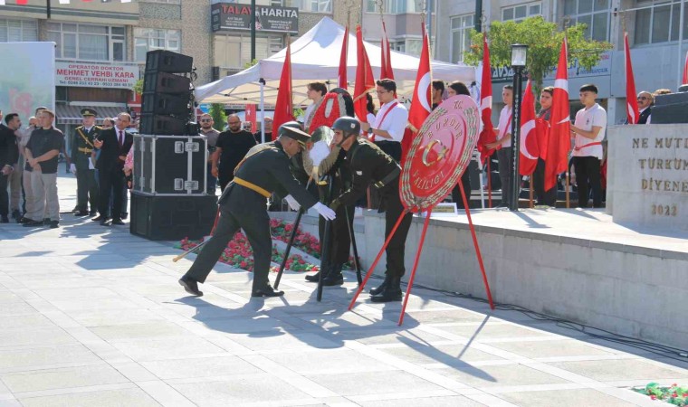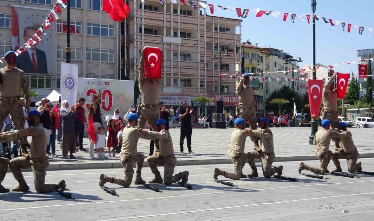 Cumhuriyet Meydanı’nda gerçekleşen kutlamalarda saygı duruşunda bulunulmasının ve İstiklal Marşı’nın okunmasının ardından Garnizon Komutanlığı’nca günün anlam ve önemini belirten konuşma yapıldı. Programda Terörle Mücadele Gazisi Ayhan Özçelik tarafından şiir okundu. Cumhurbaşkanı Recep Tayyip Erdoğan’ın tebrik mesajının okunmasıyla devam eden kutlama programında çeşitli spor müsabakalarında dereceye giren öğrencilere protokol üyeleri tarafından ödül takdim edildi. Törende İl Jandarma Komutanlığı Köpek Timi’nin ve Asayiş Komando Bölüğü’nün gösterisi vatandaşlar tarafından büyük ilgi gördü. Gençlik ve Spor İl Müdürlüğü öğrencileri tarafından halk oyunları gösterisi yapılırken buradaki kutlamalar, tören birlikleri ve öğrencilerin geçiş töreni ile son buldu.
