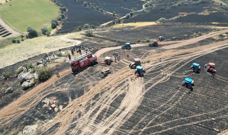 Kayseri’nin Tomarza ilçesinde yaklaşık 30 dönümlük ekili arazi, çıkan yangında küle döndü.