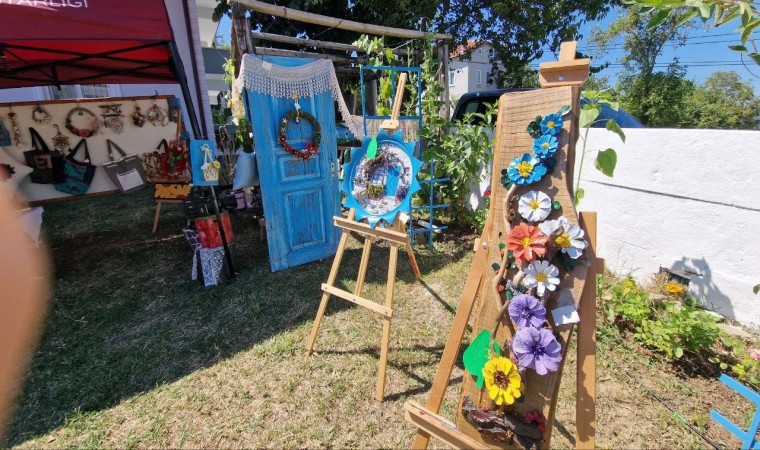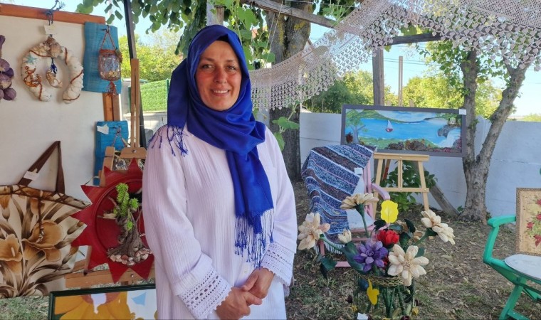 Atıl ve kullanılmayan malzemeleri yeni ve kullanışlı objelere çeviren Hatice Taşkaya, “Yaklaşık 30 yıldır böyle bir iş içerisine girdim. Çalışmalarımı insanlar görsün diye de bir sergi açtım. Mahallemizi tanıtmak ve farkındalık oluşturmak adına böyle bir iş yaptım. Burada birçok ürün kullandım örnek olarak yakınlarımızda bulunan dereden taşlar, denizden midyeleri alarak objeler yaptım. Fındık çuvallarından kapı süsleri yaptım, eski kot ve eteklerden çantalar, otomobil lastiğinden dekorasyon ürünleri yaptım. İnsanlarımızın çöp diye attığı her üründen neler çıkabilir görüntüsünü vermek için bunları hazırladım. Bunları atmadan önce defalarca düşünelim, değerlendirelim ben istiyorum ki çok fazla kullan at yapmayalım artık bir şeylerin farkına varalım, elimizdekilerin değerlerini bilelim. Gelecek nesillerimize güzel bir dünya bırakalım ve bu gayeyle elimizdekileri atmadan önce iki kez düşünelim” diye konuştu.