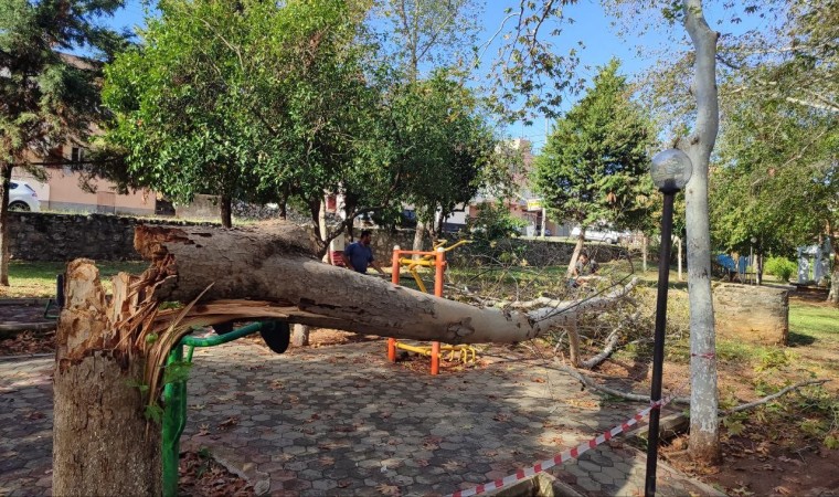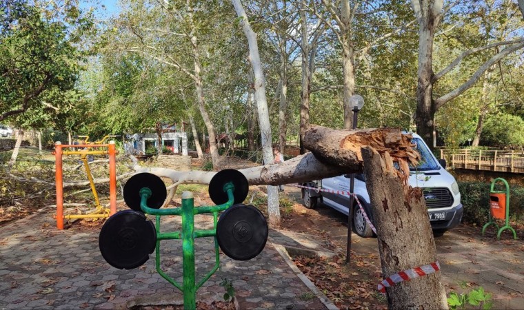 Adana’nın Kozan ilçesinde gece etkili olan fırtına nedeniyle Atatürk Parkı’nda 3 ağaç zarar gördü.