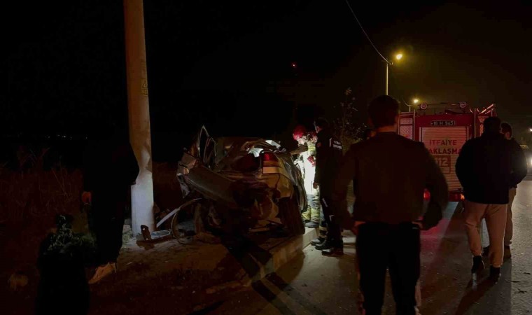 Bursa’da kontrolden çıkan otomobil 35 metre boyunca sürüklenerek elektrik direğine çarptı. Kazada sürücü ağır yaralandı.