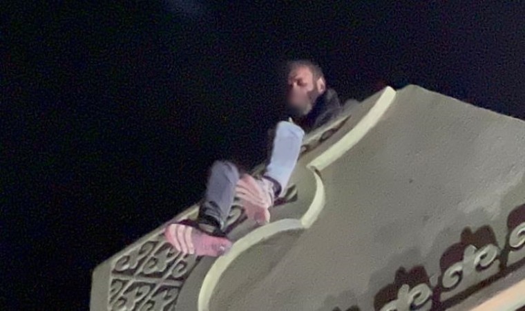 Aksaray’da aşırı alkol aldıktan sonra şehrin sembollerinden olan 35 metre yükseklikteki yapıta çıkan şahıs ekiplere zor anlar yaşattı.