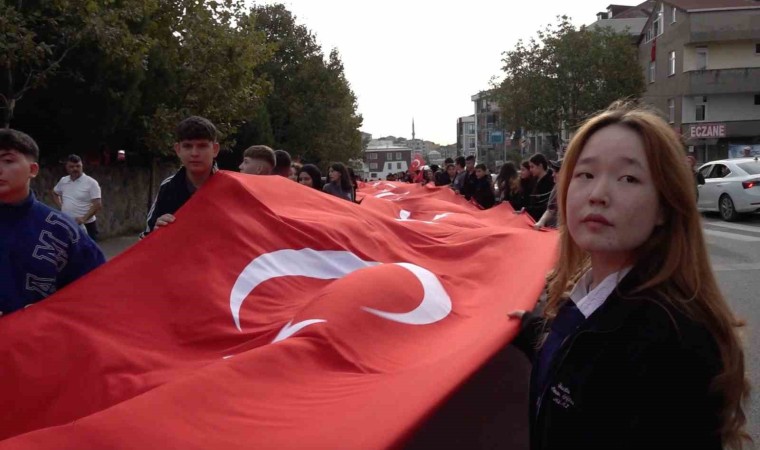 Tuzla’da 29 Ekim kutlamaları çerçevesinde yüzlerce öğrencinin katılımıyla 350 metrelik dev Türk bayrağı kortej yürüyüşünde taşındı. Tuzla Belediyesi ve Tuzla İlçe Milli Eğitim Müdürlüğü tarafından düzenlenen etkinlikte çocukların heyecanı, Cumhuriyet’in yeni yüzyılı için duydukları mutluluk ve gurur yüzlerine yansıdı.