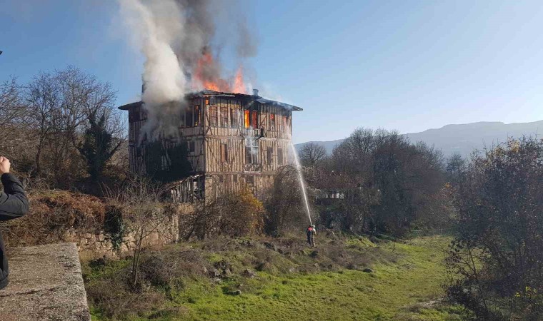 Karabük’ün evleri ile ünlü Safranbolu ilçesine bağlı Yörük köyünde 350 yıllık 3 katlı tarihi konak çıkan yangında alevlere teslim oldu.