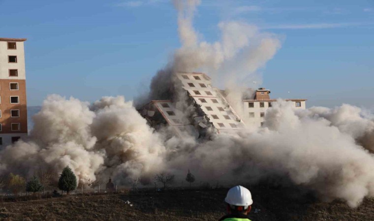 Ekiplerin geri sayımı ile 2 bina saniyeler içinde yerle bir oldu. Patlatmayı daha önce binalarda yaşayan depremzedeler de takip etti.