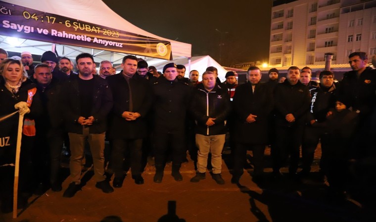 Kahramanmaraş merkezli depremde 38 kişinin öldüğü Kahta otogar kavşağındaki yıkılan binanın enkaz yerinde kurulan taziye çadırında saat 04.17’de anma etkinliği gerçekleştirildi.