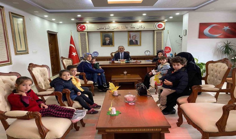 Kur’an kursu öğreticileri Gülsüm Özkan ve Elif Çuhadaroğlu’nun gözetiminde müftülüğe getirilen minikler, harçlıklarını deprem bölgesindeki çocuklara gönderilmek üzere İl Müftüsü Bayram Danacı’ya teslim ettiler. Öğrenci ve öğreticileri makamında ağırlayan Müftü Danacı, göstermiş oldukları bu davranıştan ötürü çocukları tebrik etti.