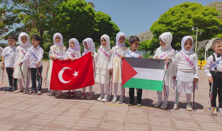 6 yaş Kur’an kurslarının kapanış programı gerçekleştirilirken, minikleri Filistin hassasiyeti ise büyük beğeni topladı.