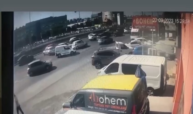 Bursa’da hızla gelen hafif ticari araç, fren yapmasına rağmen duramayınca önündeki otomobile çarptı. Savrulan otomobil de önündeki iki araca çarparken, kaza kameraya anbean yansıdı.