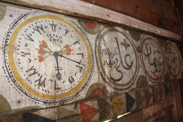 Ersin DEMİR/KAVAK(Samsun), (DHA)- SAMSUN’un Kavak ilçesinde bulunan 4 asırlık ahşap camideki kalem işi süsleme sanatı ile çizilen ve 5.19’u gösteren saatin sırrı çözülemedi. Ondokuz Mayıs Üniversitesi (OMÜ) Sanat Tarihi Bölüm Başkanı Doç. Dr. Kemal Özkurt, “Bazen sanatçılar, yaptıkları eserlerin bir köşesine sır diyebileceğimiz bir şeyler gizlerler. Bu saat de onların bir örneği olabilir” dedi.